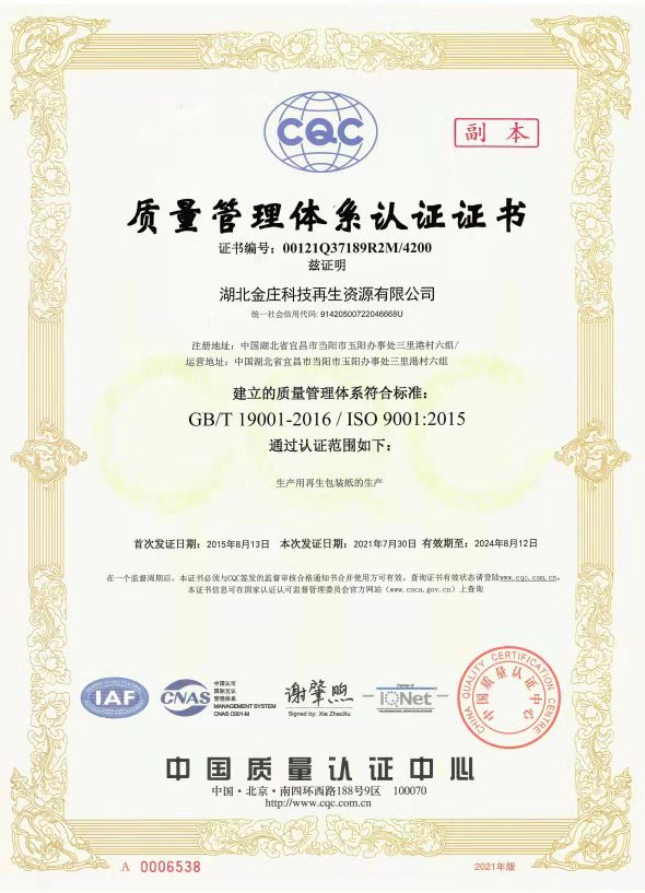 湖北金莊科技再生資源有限公司是以生產(chǎn)再生包裝紙和為工業(yè)園區(qū)集中供熱的資源綜合利用加工服務(wù)型企業(yè)。公司位于當(dāng)陽市金橋工業(yè)園,成立于2000年,注冊資本15486.72萬元,占地面積近400畝,現(xiàn)有員工500余人。 自成立以來,公司始終堅(jiān)持“誠信、創(chuàng)新、共贏”的經(jīng)營理念,努力踐行“資源再生綜合利用,堅(jiān)持綠色能源可持續(xù)發(fā)展,以為社會提供綠色可持續(xù)穩(wěn)定適用的產(chǎn)品為己任”的經(jīng)營方針。